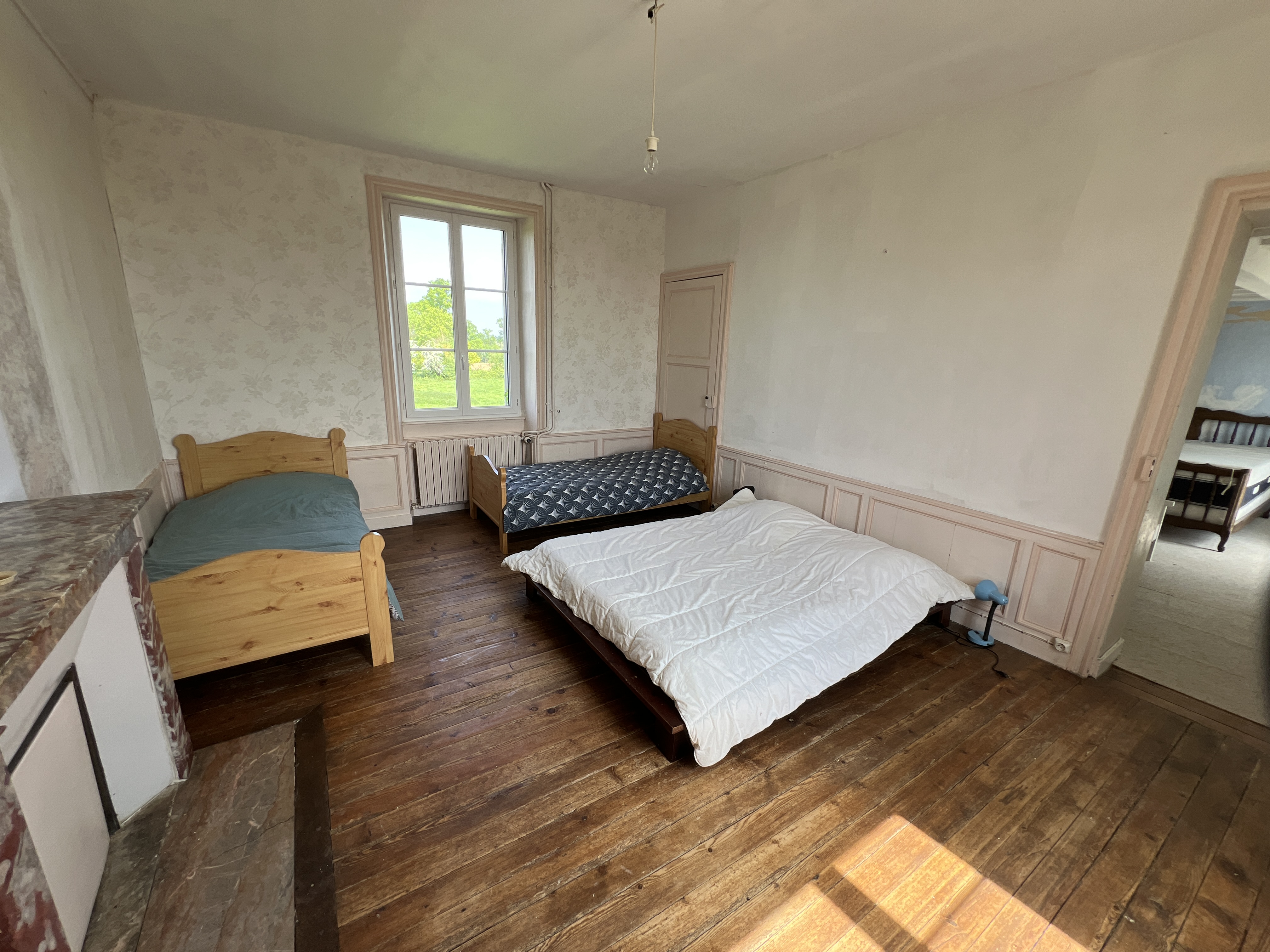 Palier desservant trois chambres, dont une avec point d’eau et WC,