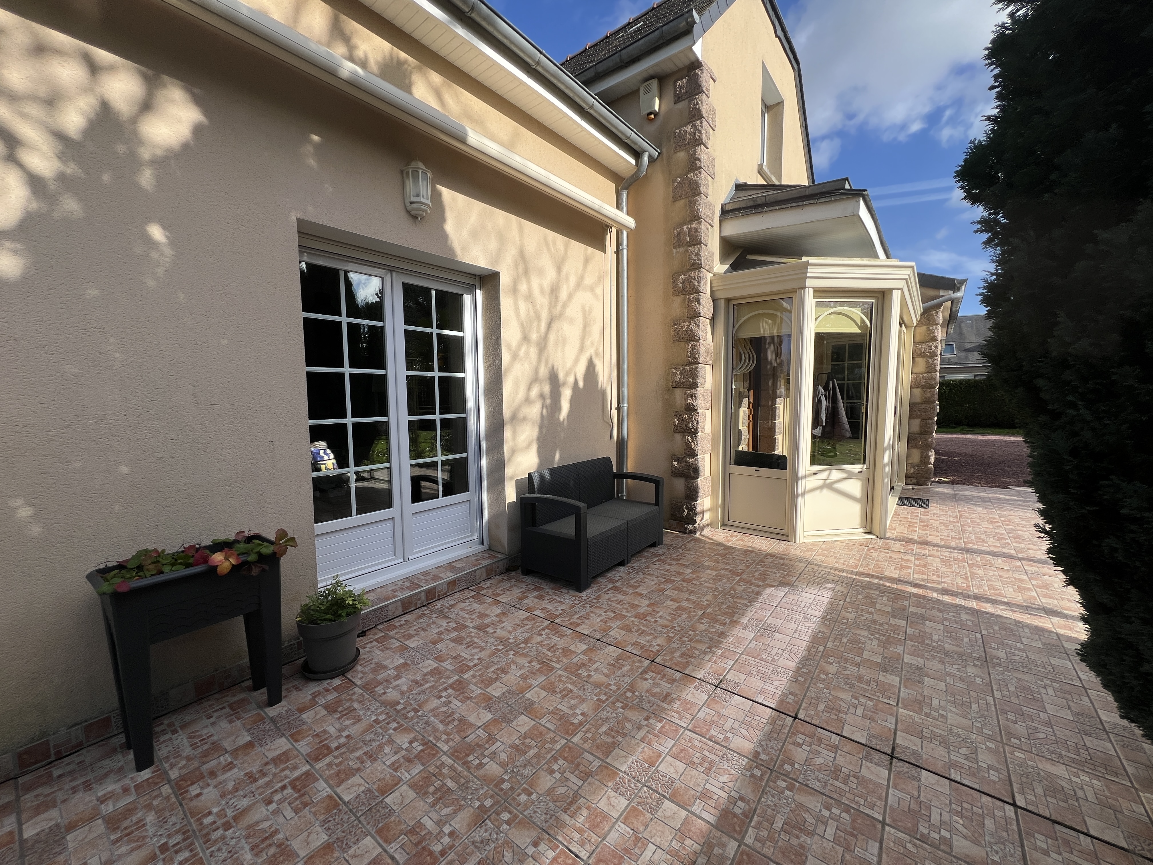 Véranda lumineuse ouvrant sur l’entrée,