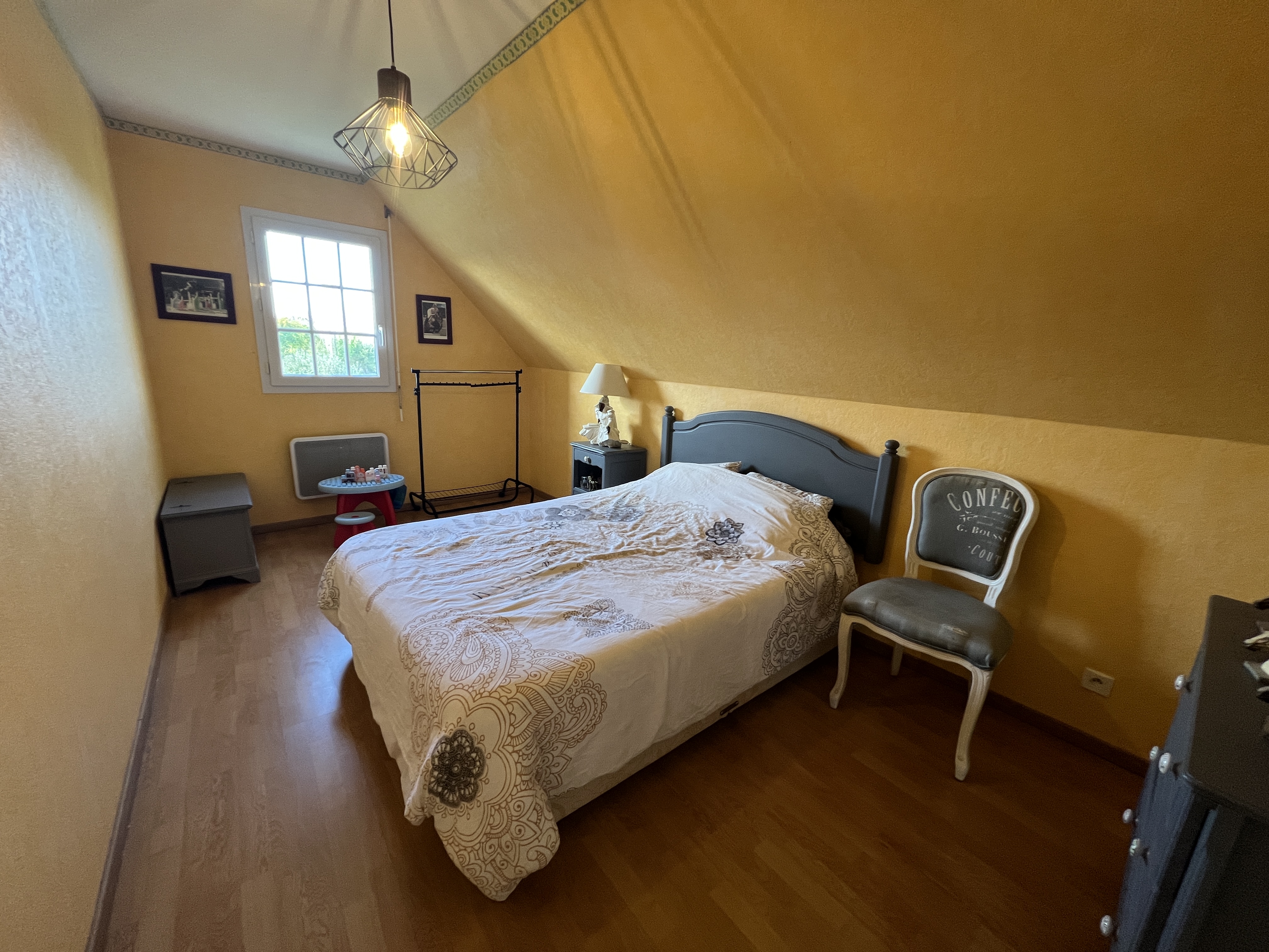 Le chauffage au rez-de-chaussée est assuré par un plancher chauffant électrique, complété par la cheminée à insert.