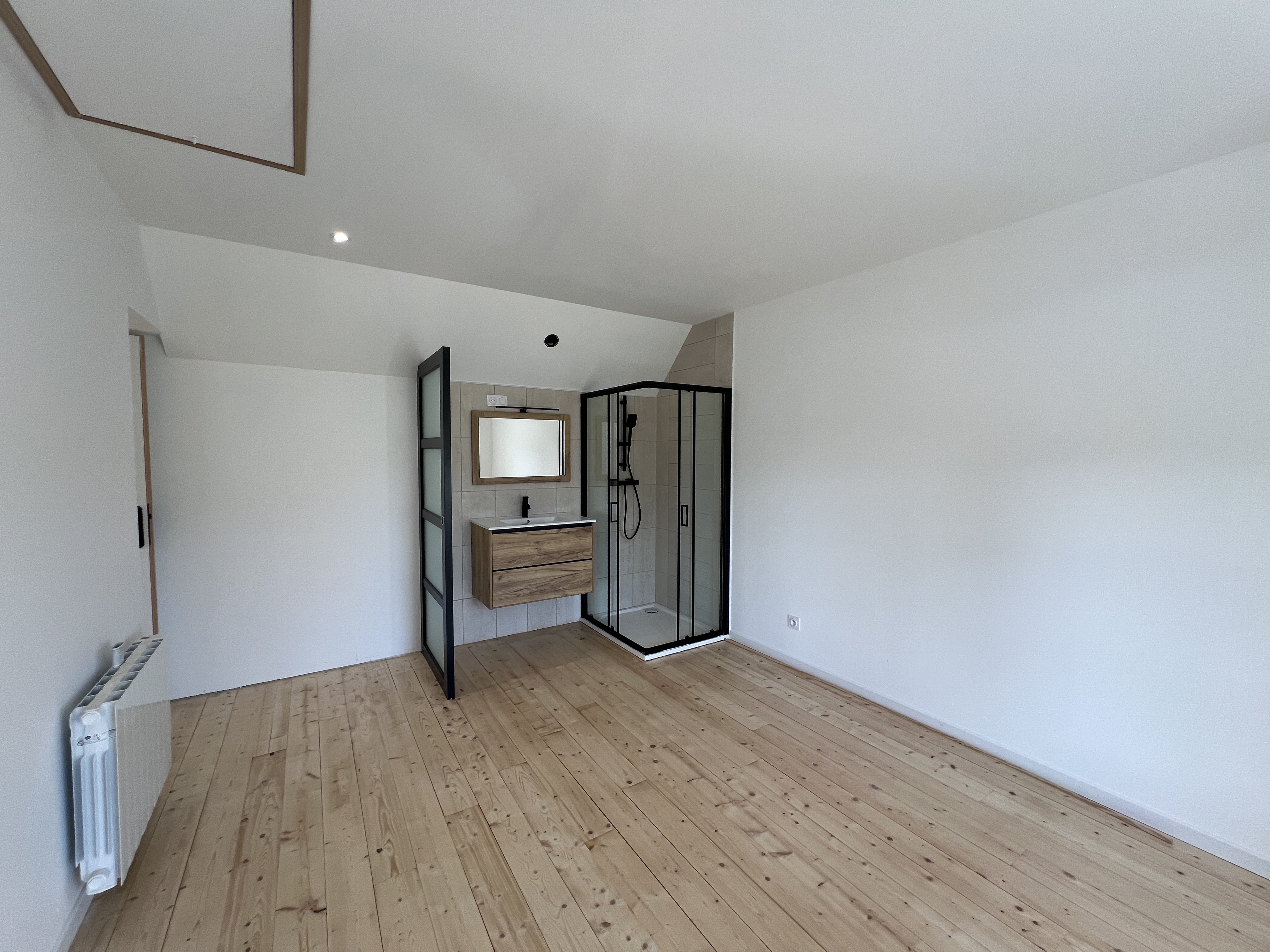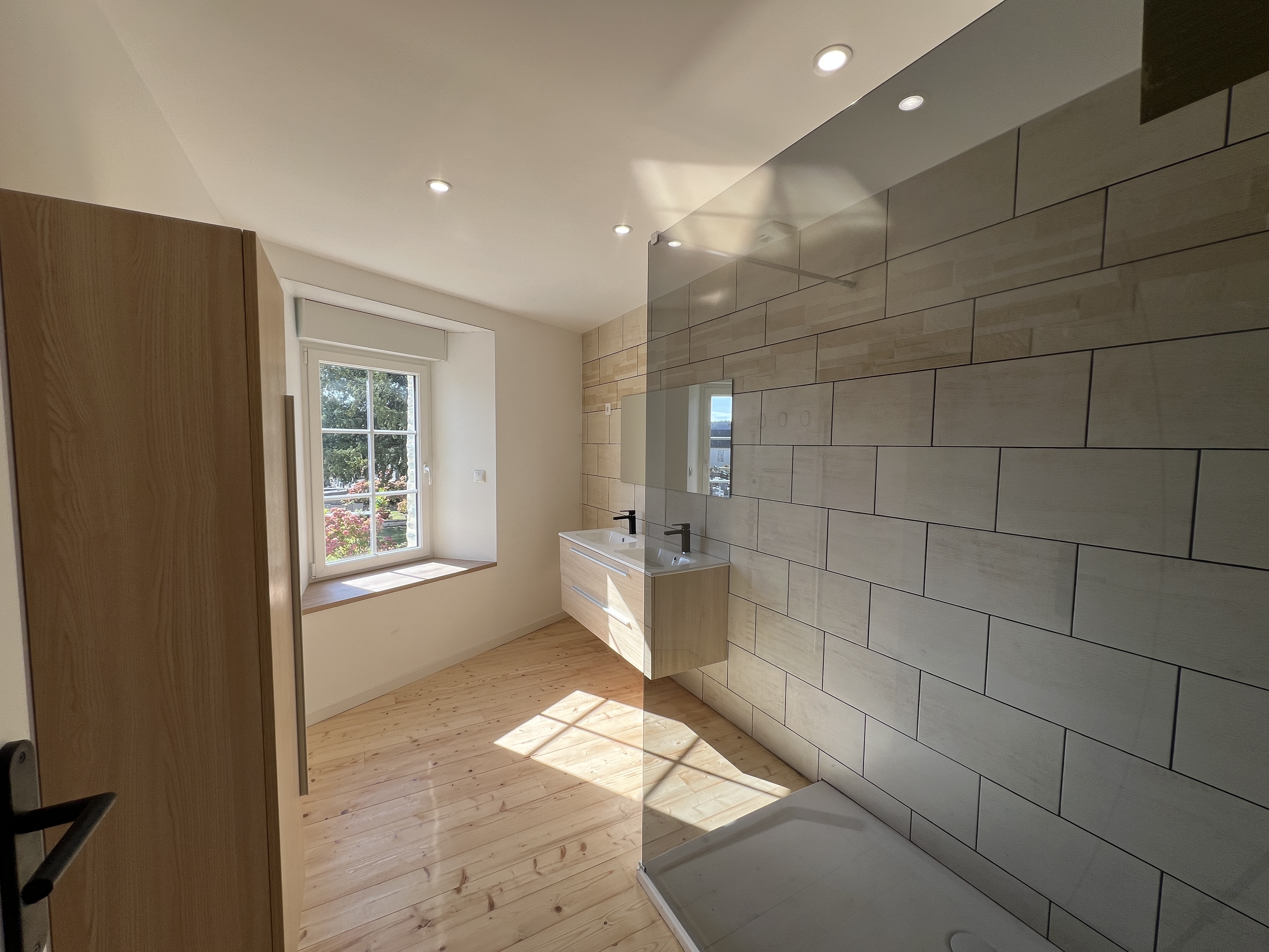 Au premier étage : palier desservant trois chambres dont une avec salle d’eau, salle de bains avec W.C.