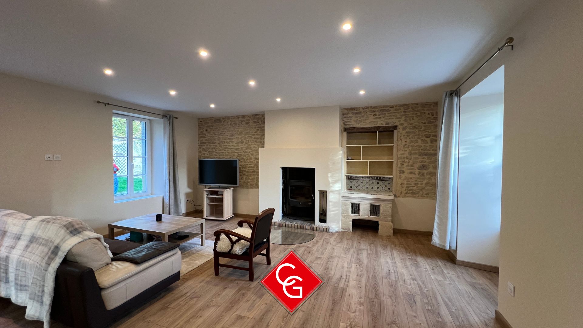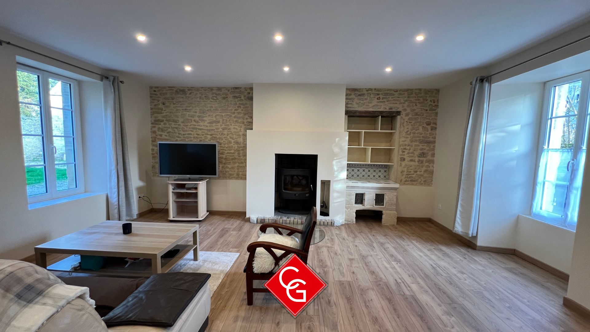 -Un grand séjour-salon lumineux avec poêle à bois (plus de 50 m²)