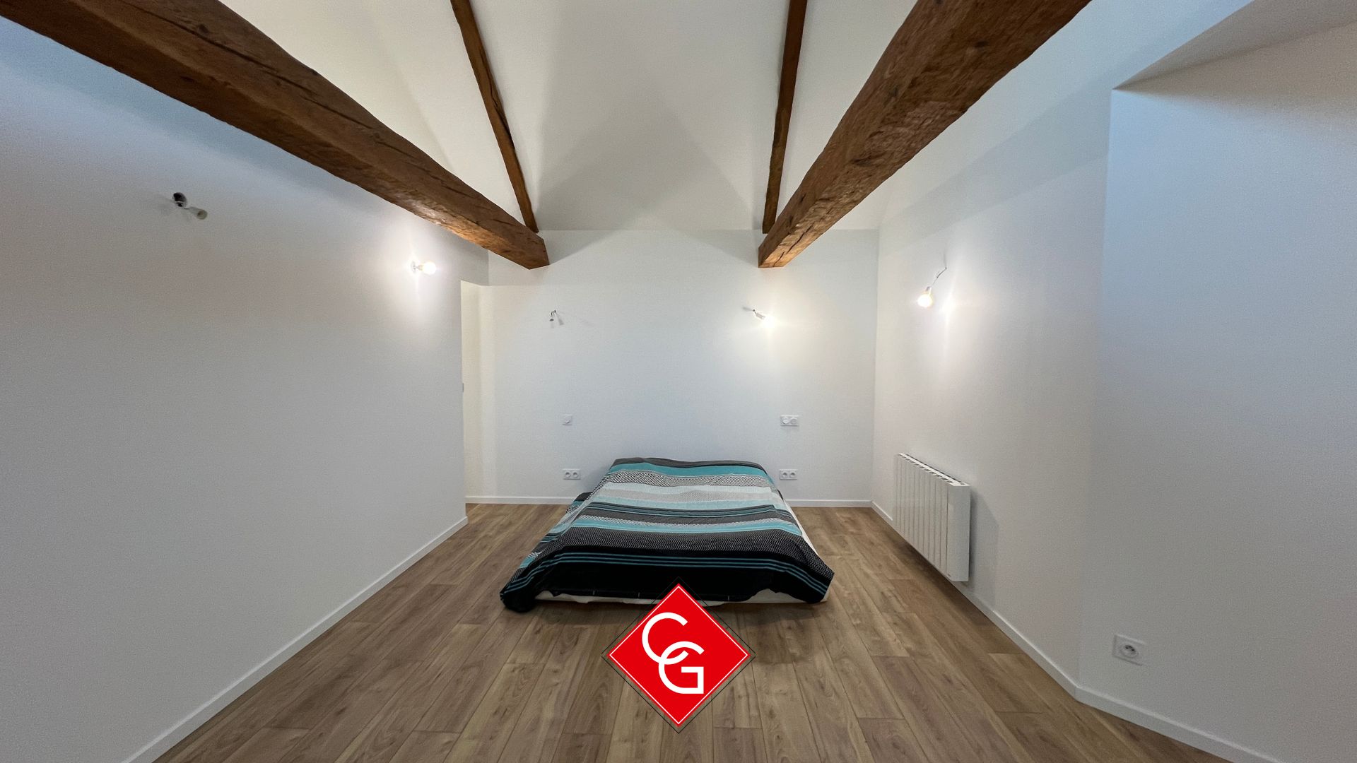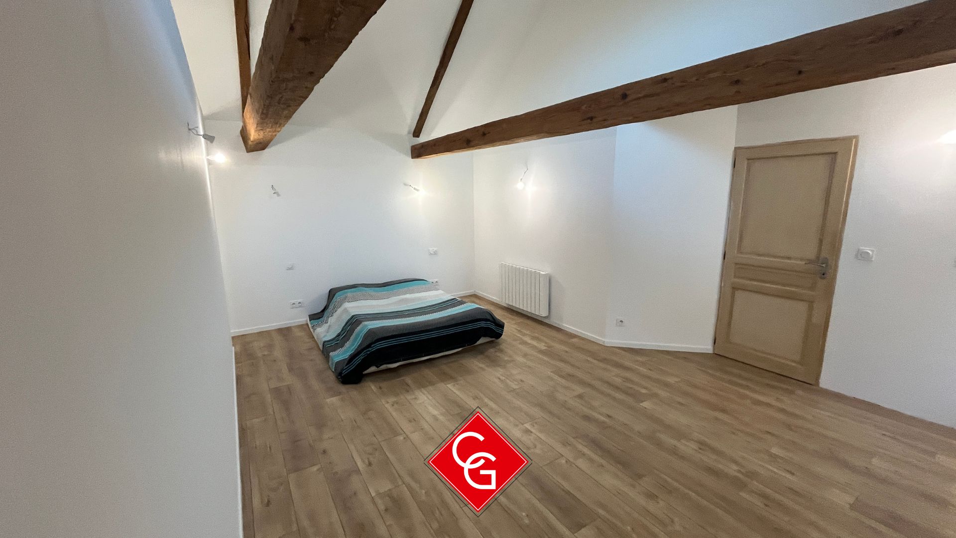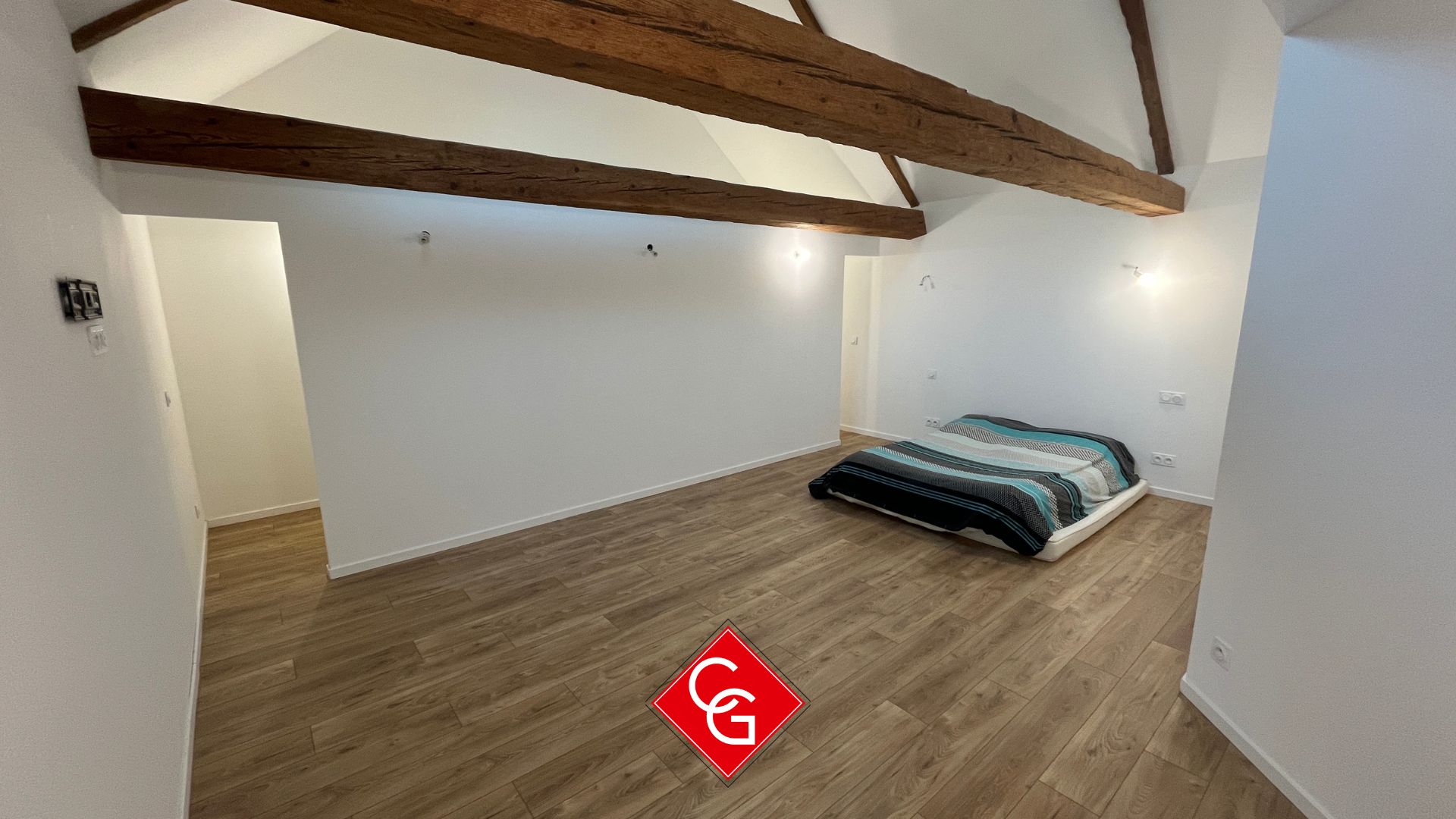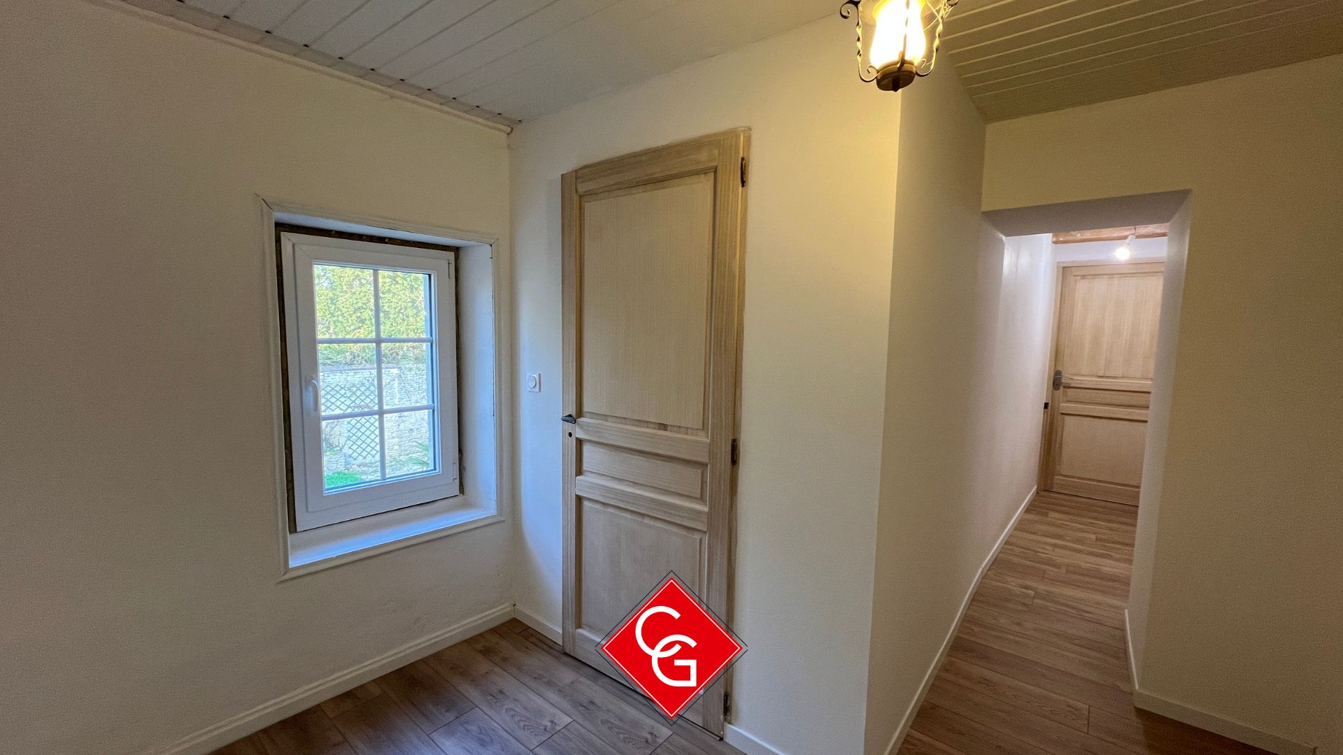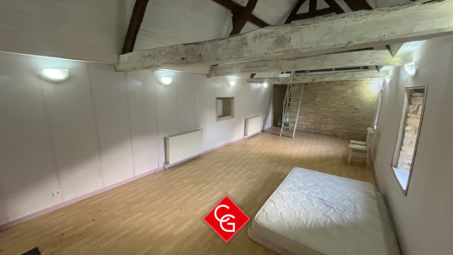 Accessible par un escalier en pierre extérieur, cet appartement indépendant offre de belles perspectives avec une possibilité d’ouvrir  un mur pour faire communiquer le logement avec l’habitation principale. :